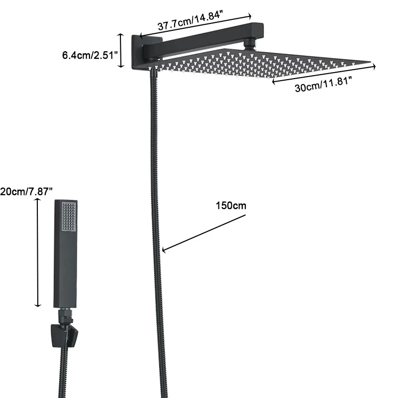 O kit inclui o chuveiro de teto 30x30 cm, o chuveirinho manual, o desviador e os acessórios de instalação. Tudo o que você precisa para uma montagem completa e funcional.